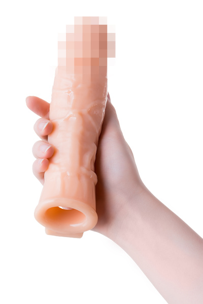 Увеличивающая насадка с фантазийным рельефом в виде вен и пупырышек от KOKOS открывает новые возможности для взаимного удовольствия и воплощает фантазии о внушительном размере пениса. Увеличенный размер и объем полового члена добавляет мужчине уверенности в своих сексуальных возможностях. Дополнительная стимуляция партнерши для яркого и насыщенного оргазма. Увеличение продолжительности полового акта у мужчины - задержка эякуляции, и наращивание темпа приближения оргазма у женщины. Реалистичная насадка на пенис - необходимый элемент для вашей сексуальной игры, если вы хотите максимально удовлетворить свою партнершу и сделать ваш секс незабываемым. Насадка придает дополнительный объем и длину половому члену. Мощная головка имеет рельеф из мелких пузырьков и крупный выступ. Очень хорошо стимулирует зону G и вход во влагалище благодаря значительному размеру. Особенный рельеф в виде многочисленных вен по всему стволу насадки деликатно ласкает чувствительные зоны. Дополнительный объем дарит то самое чувство наполненности, увеличивая поток возбуждения. Мужчина тоже будет ощущать стимуляцию за счет давления стенок влагалища на пенис. Для идеальной посадки по длине пениса используйте губчатую вставку, которая находится внутри насадки, подрезав ее до нужной длины. Не забудьте надеть презерватив в этом случае. В основании есть отверстие для мошонки, с помощью которого вы можете надежно зафиксировать насадку на пенисе и не ограничивать себя в активных движениях. Супер эластичный и нежный материал быстро принимает температуру тела, отлично тянется, сохраняя при этом прочность. Долговечность использования при соблюдении правил хранения и ухода за насадкой.. Насадка сделана из высококачественного безвредного для человеческого организма материала, который прошел необходимые тестирования и сертификацию. Рекомендуем использовать до и после применения - дезинфицирующее средство для игрушки, чтобы обеспечить длительное скольжение и комфорт интимных отношений, рекомендуем использовать смазку на водной основе. Для бережного хранения материала пересыпать пудрой для игрушек. Хранить при температуре не выше 35 градусов, избегать попадания прямых солнечных лучей. Перед хранением необходимо хорошо просушить